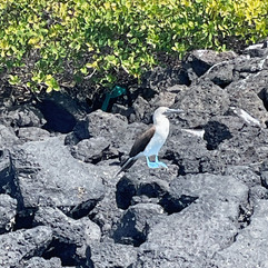 Our activities for our five-day trip included walks, boats, snorkeling, swimming, animal watching, listening to very knowledgeable guides and learning many facts about the local flora and fauna. As Harold talks to everyone, we soon learned about many rumors and theories about all kinds of local business. We encountered many sea lions (in Galápagos there are only sea lions and you know because they have little external ears, whereas seals don't have any outer ears at all), pelicans, turtles, and even the Darwin finch. And while walking on the footpaths and streets, we had to watch out not to step on the iguanas that were sleeping there. Wildlife has right of space and right of way, always! Two special experiences were to see sharks up close while snorkeling, and learn about the native bird piquero de patas azules. The sharks were friendly enough, maybe up to a meter long. They are a bit scary though, no matter what the guide says!